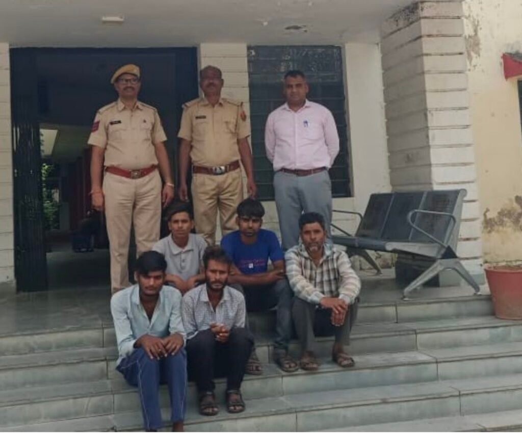 उदयपुर। उदयपुर की फतहनगर थाना पुलिस ने भैंस चोरी के एक मामले में संगठित गिरोह का पर्दाफाश करते हुए पांच आरोपियों को गिरफ्तार कर चोरी की गई दो भैंसें और वारदात में प्रयुक्त पिकअप वाहन बरामद किया है। लालथानाधिकारी फतहनगर श्री चन्द्रशेखर किलानिया के नेतृत्व में गठित पुलिस टीम द्वारा कार्यवाही की गई।