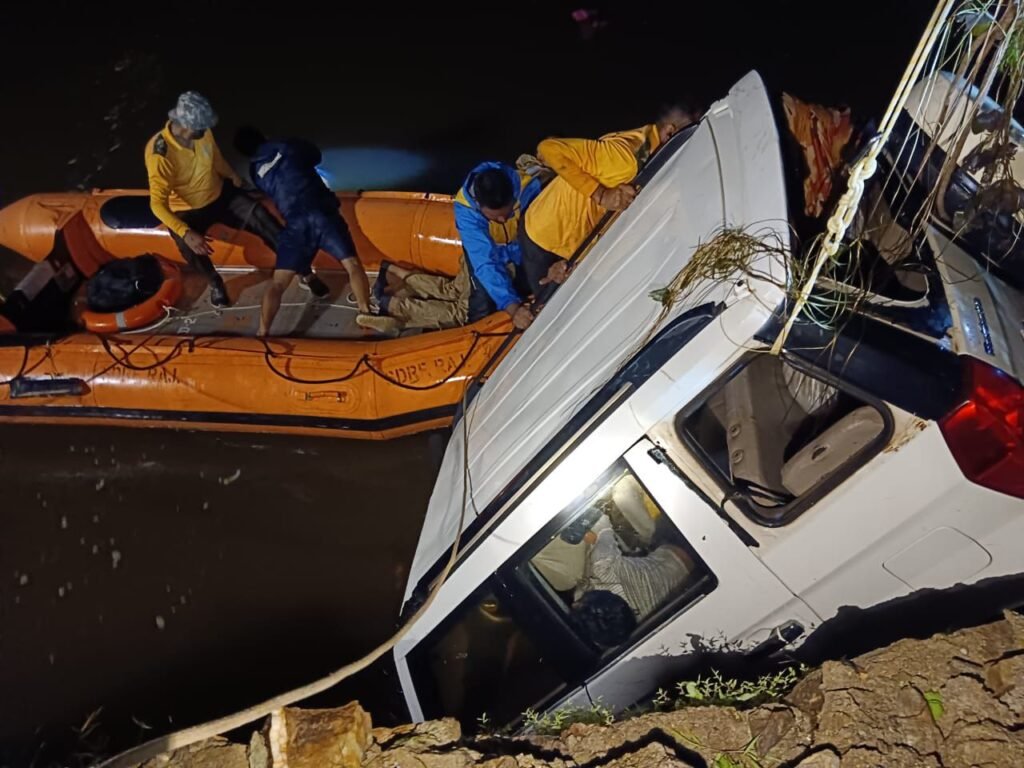 रेस्क्यू ऑपरेशन पूरी रात चला: घटना की सूचना मिलते ही खेरवाड़ा थाना पुलिस मौके पर पहुंची। स्थिति गंभीर देखते हुए नागरिक सुरक्षा विभाग और एसडीआरएफ की टीम को तत्काल बुलाया गया। रेस्क्यू टीम उदयपुर शहर से रवाना होकर करीब रात साढ़े 12 बजे मौके पर पहुंची। इसके बाद करीब एक घंटे की मशक्कत के बाद कार को नाले से बाहर निकाला गया। साथ ही दो युवकों के शव भी बरामद किए गए।तीसरे युवक का पता देर रात नहीं लग पाया, जिसके चलते रेस्क्यू ऑपरेशन मंगलवार सुबह फिर शुरू किया गया। शवों को खेरवाड़ा थाना पुलिस को सुपुर्द कर आगे की कार्रवाई की गई।