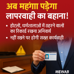 उदयपुर। राजस्थान सरकार ने राज्य भर के होटल, धर्मशालाएं, सराय और अन्य ठहरने वाले व्यावसायिक स्थलों के लिए निर्देश जारी किया है। अब इन सभी संस्थानों को आने वाले हर व्यक्ति का पूरा रिकॉर्ड रखना अनिवार्य होगा, चाहे वह रिकॉर्ड भौतिक रजिस्टर में हो या डिजिटल माध्यम से। अगर यह रिकॉर्ड नहीं रखा गया, तो संबंधित संस्थान के मालिक, संचालक या प्रभारी पर सख्त कार्रवाई की जाएगी।