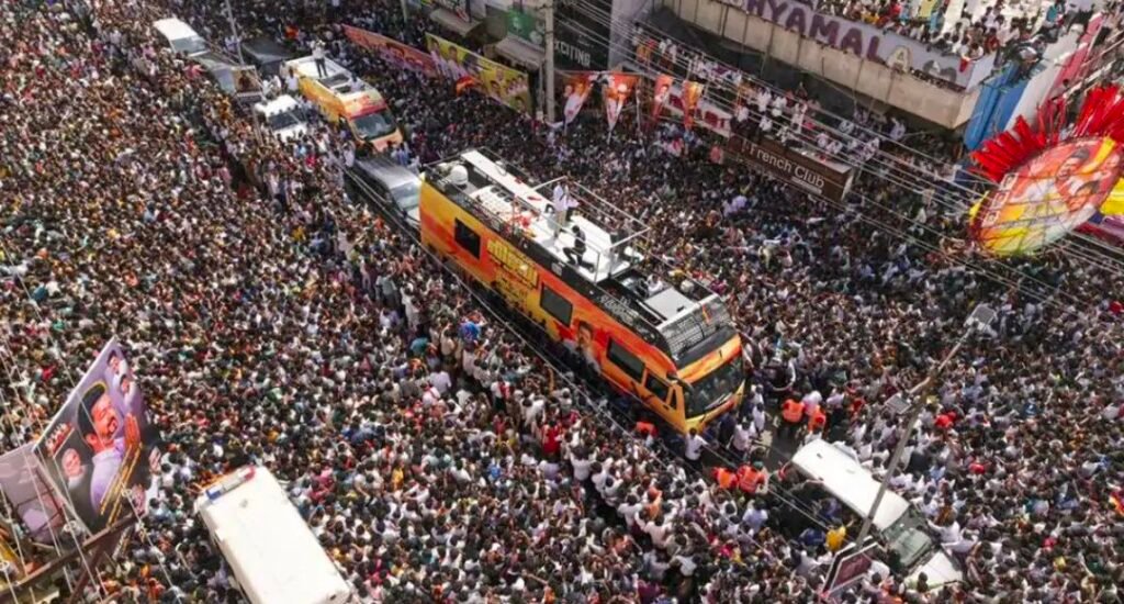 जानकारी के मुताबिक अभिनेता से नेता बने विजय की पार्टी तमिलगा वेट्री कजगम यानी TVK की रैली में बड़ी संख्या में लोग पहुंचे थे। बताया गया है कि 9 साल की एक बच्ची गुम गई थी। विजय ने मंच से उसे तलाशने की अपील पुलिस और अपने लोगों से की, जिसके बाद वहां भगदड़ जैसे हालात बन गए।