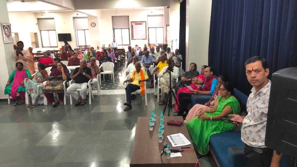 अंत में स्वरांजलि ग्रुप और सभी बुजुर्गों ने मिलकर “चलते-चलते मेरे ये गीत याद रखना” गाकर कार्यक्रम को अविस्मरणीय बना दिया।
