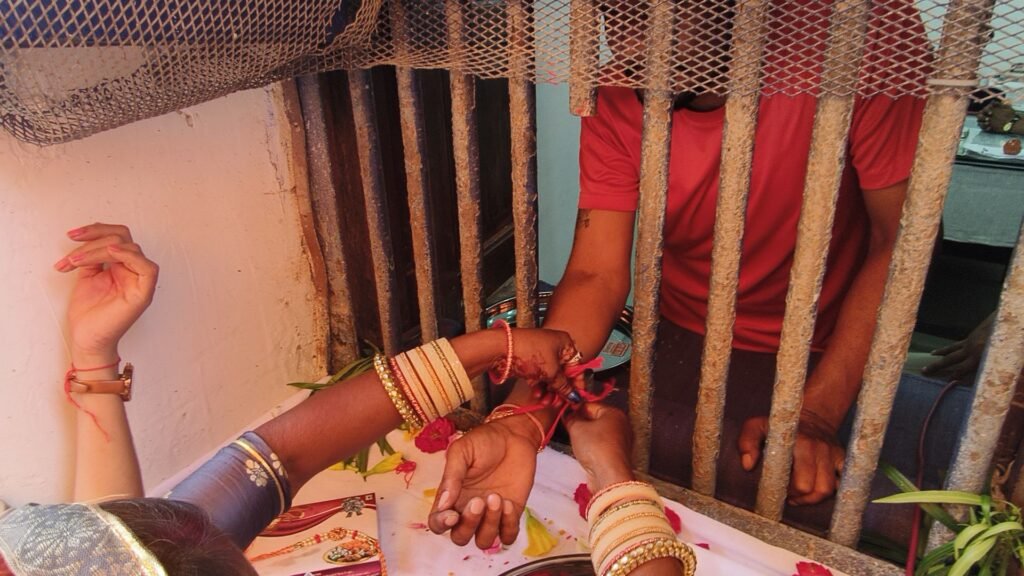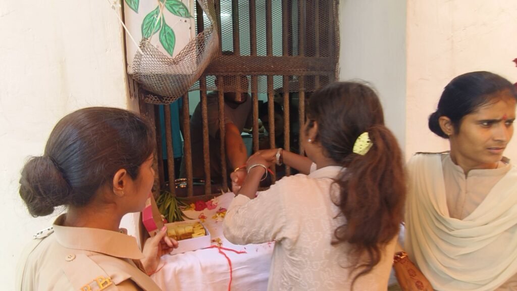 उदयपुर। भाई-बहन के अटूट स्नेह का पर्व रक्षाबंधन शनिवार को धूमधाम से मनाया जा रहा है। उदयपुर के केंद्रीय कारागार में भी भावनाओं से भरा नजारा देखने को मिला। सुबह से ही बड़ी संख्या में बहनें अपने-अपने भाइयों को राखी बांधने जेल पहुंचीं। जैसे ही सलाखों के पीछे खड़े भाइयों की कलाई पर बहनों ने रक्षा सूत्र बांधा, चेहरे पर खुशी और आंखों में नमी एक साथ उतर आई। मुंह मीठा कराने के बाद कई बहनें अपने भाइयों के गले लग रो पड़ीं। किसी ने भाई की लंबी उम्र की दुआ मांगी, तो किसी ने जल्द रिहाई की प्रार्थना की।कई बहनें वर्षों से सलाखों के पीछे अपने भाइयों को राखी बांधने आती रही हैं, जबकि कुछ बहनें पहली बार इस पीड़ा से गुजर रही थीं। सभी ने यही कामना की कि किसी भी भाई-बहन को यह दिन देखने का अवसर न आए, जब राखी का पर्व जेल की सलाखों के पीछे मनाना पड़े।
