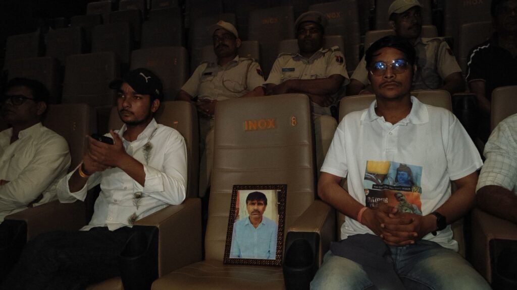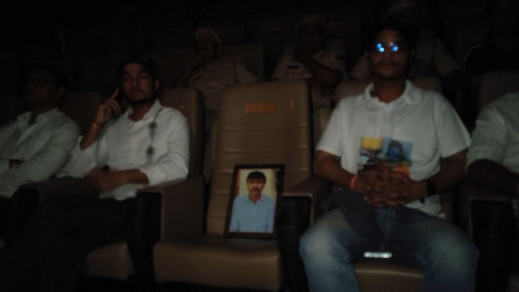 भावुक माहौल के बीच दोनों बेटों ने अपने पिता की तस्वीर अपने साथ रखी और उनके लिए एक सीट भी खाली छोड़ी, मानो कन्हैयालाल खुद पर्दे पर अपनी कहानी देख रहे हों।