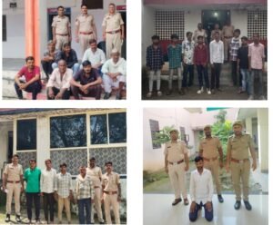 उदयपुर। हर बार बदमाश पुलिस को चकमा दे जाते हैं और इस बार बदमाश पुलिस से गच्चा खा गए। दरअसल, उदयपुर पुलिस ने जिलेभर में दबिश देकर बदमाशों को पकड़ा है। बदमाशों ने सोचा कि पुलिस की धरपकड़ एक दिन में खत्म हो गई और वे फिर से आराम से घर पहुंचे। लेकिन, पुलिस ने दूसरे दिन लगातार दबिशन देकर 201 बदमाशों को पकड़ लिया। उदयपुर रेंज आइजी गौरव श्रीवास्तव और एसपी योगेश गोयल के निर्देशानुसार जिले में बदमाशों की धरपकड़ और क्षेत्र प्रभुत्व को लेकर कार्रवाई की। विशेष अभियान के तहत सोमवार सुबह आकस्मिक जांच के तहत धरपकड़ की गई। जिले के प्रत्येक थाने में थानाधिकारियों के नेतृत्व में 57 से अधिक टीमों का गठन किया गया था। करीब 215 जगहों पर धरपकड़ की गई। जिले में 357 स्थानों पर दबिश दी गई।